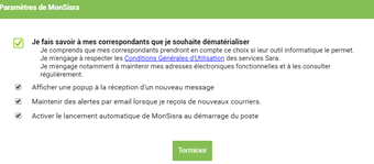 cliquez sur « gérer les paramètres de MonSisra » puis cochez ou décochez le paramétrage initial pour le modifier :
