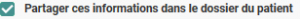 Si vous avez associé un patient à votre message (cf Comment centrer un envoi sur un patient ?) vous avez la possibilité de partager les informations envoyées dans le dossier du patient aux professionnels que le patient a autorisé à accéder à son dossier, en cochant la coche