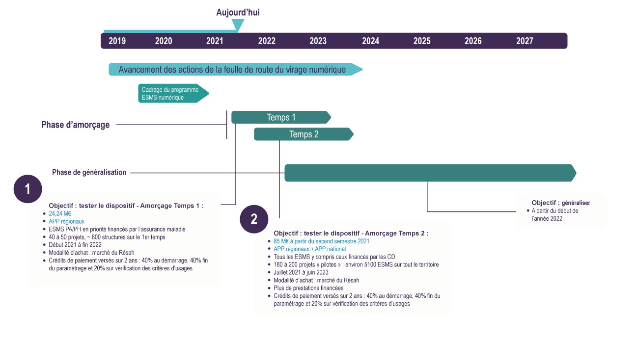 Le programme ESMS numérique se divise en deux phases : une phase d’amorçage et une phase de généralisation.